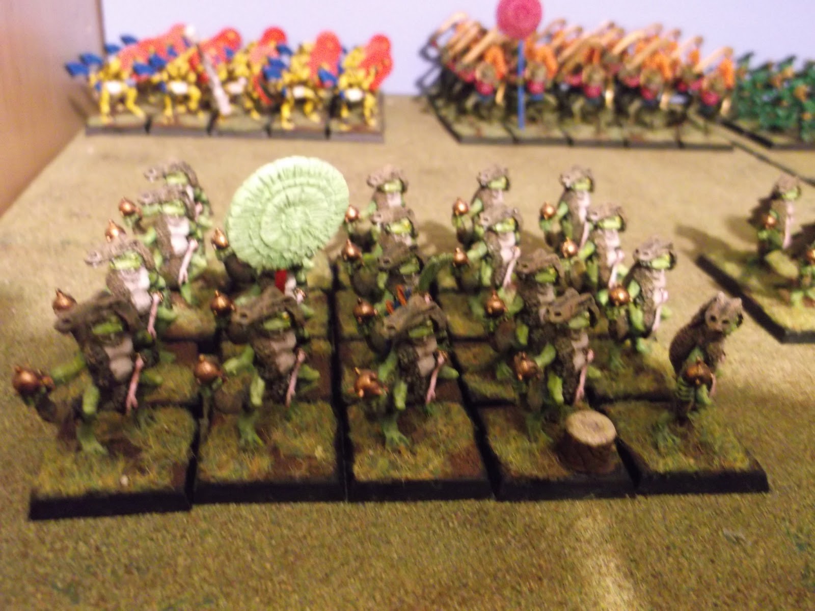 For those interested, they produced two types of miniature for the Alligator warrior. The One on the left has a plain back, whereas the one of the right (who makes up the whole of my smaller Alligator regiment) has an intrigal fin on the back. This is not a convertion but a seperate type.
